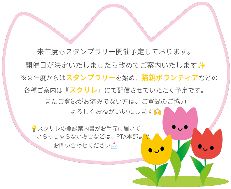 (今回、スタンプラリーの日が学級閉鎖と重なった、2年1組、3年3組、5年3組のクラスは救済措置を取らせていただきました)